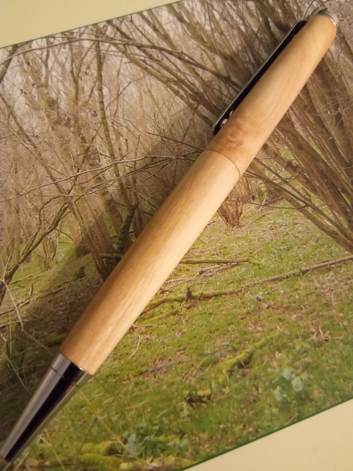 A modified slimline i made recently from wild olive wood. This is the wild relative of the domesticated olive tree; more robust, dense and not fruit producing. I small problem i have when i eliminate center bands is that the pen is not 100% round (maybe the same happens in ordinary slimlines also but the center ring makes this unnoticeable). I am thinking to make a new shaft for my pen mandrel ( which is a relatively high quality axminster evolution), maybe the diameter of the shaft is a bit smaller than the tubes. Any advice is welcome, cheers.