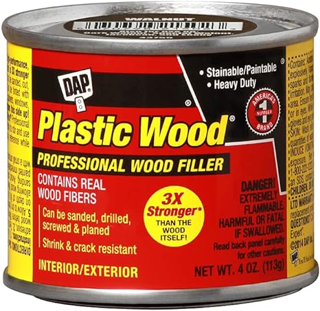 So this is my weapon of choice for wood filler, that will not show. MY whole life, I use a little and by next time its dried out to the point I just throw it away and buy new. There's tiny little print on the can saying if it dries out, just add a little acetone to the can and voila, good as new, I tried it, and it worked fine My other perplexing question regarding this product....... Why do they print the cans upside down?