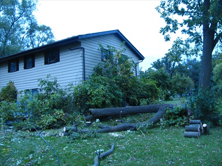 AS you may realize, Dawn and I rarely see the house--we spend seven days a week at the office, so I don't really "plan" home maintenance time--this project could not wait, the wind was NOT that strong last night, so a HEAVY wind could have shifted the tree into our dining room---