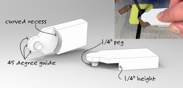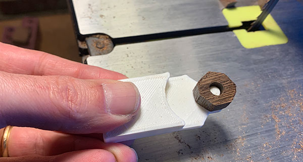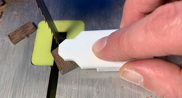 To reduce the amount of material I need to remove on the lathe I wanted to cut the pieces into octagons before turning. But I'm fond of my fingers so designed and 3d printed this guide. It works really well.