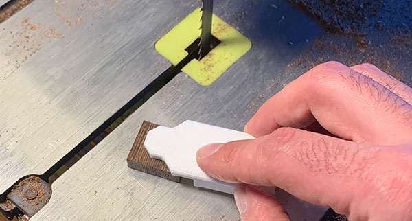 2. Snap onto the guide and run it straight across the bandsaw.