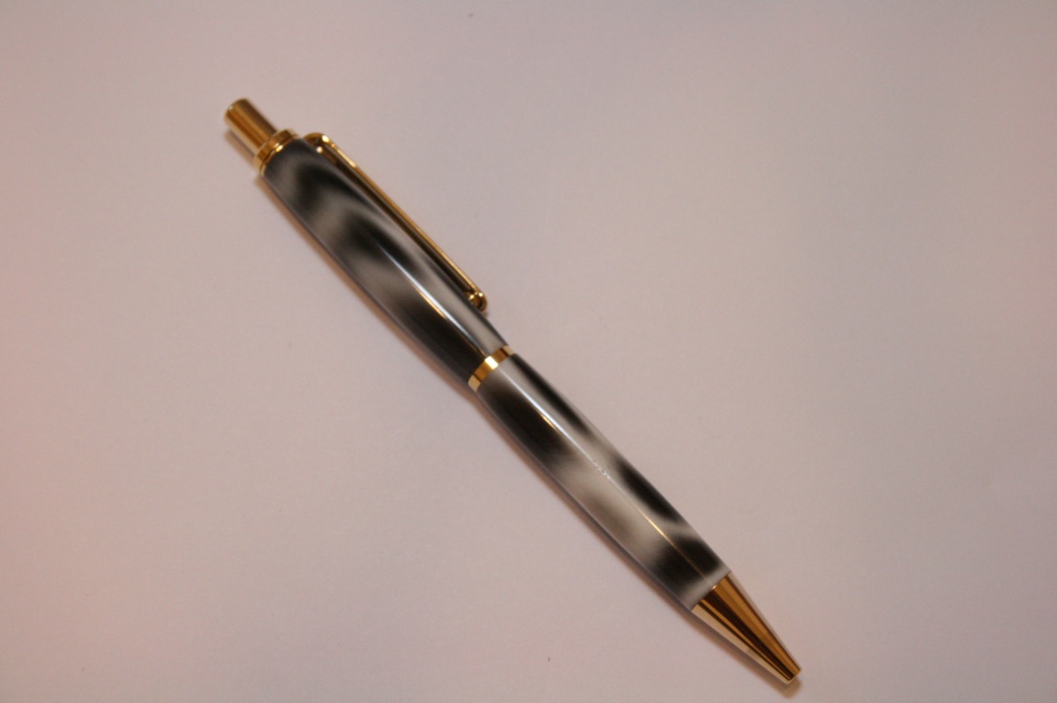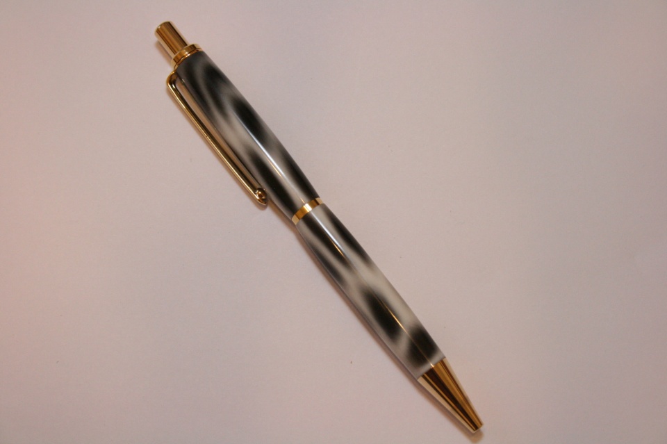 I wanted to turn a pen this morning as I'm not sure what will happen after I see the foot specialist this afternoon. I want to that who ever it was that sent me the Snow Leopard blank it was a joy to turn and finish. I paired it up with a gold Woodcraft click. I wet sanded to 6000 mm and polished with Hut plastic polish. I tried to match up the pattern in the blank as best I could and I think it very close. Any and all C&C welcome.