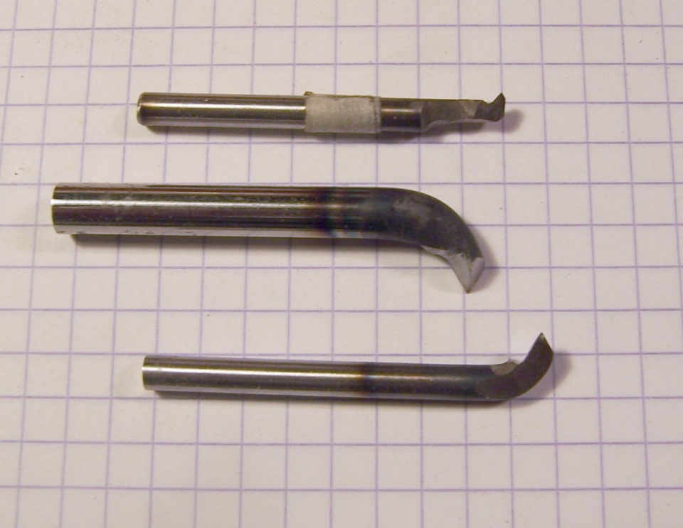 Darrin, I use a stronger machine than a Dremel, but it is the same. In front is the threading machine, home made on the same idea as Hope's threading jig. Here are the tools I use, made from a HSS bar. Hope it helps.