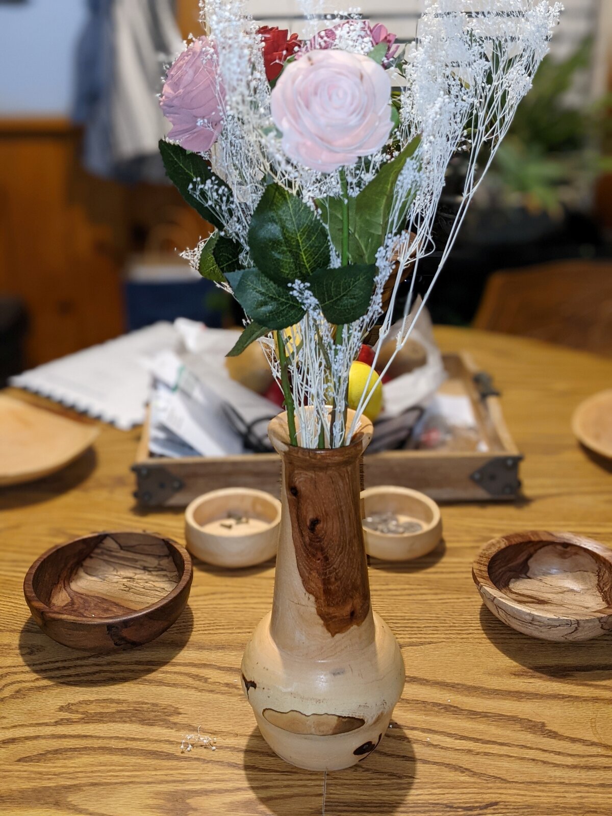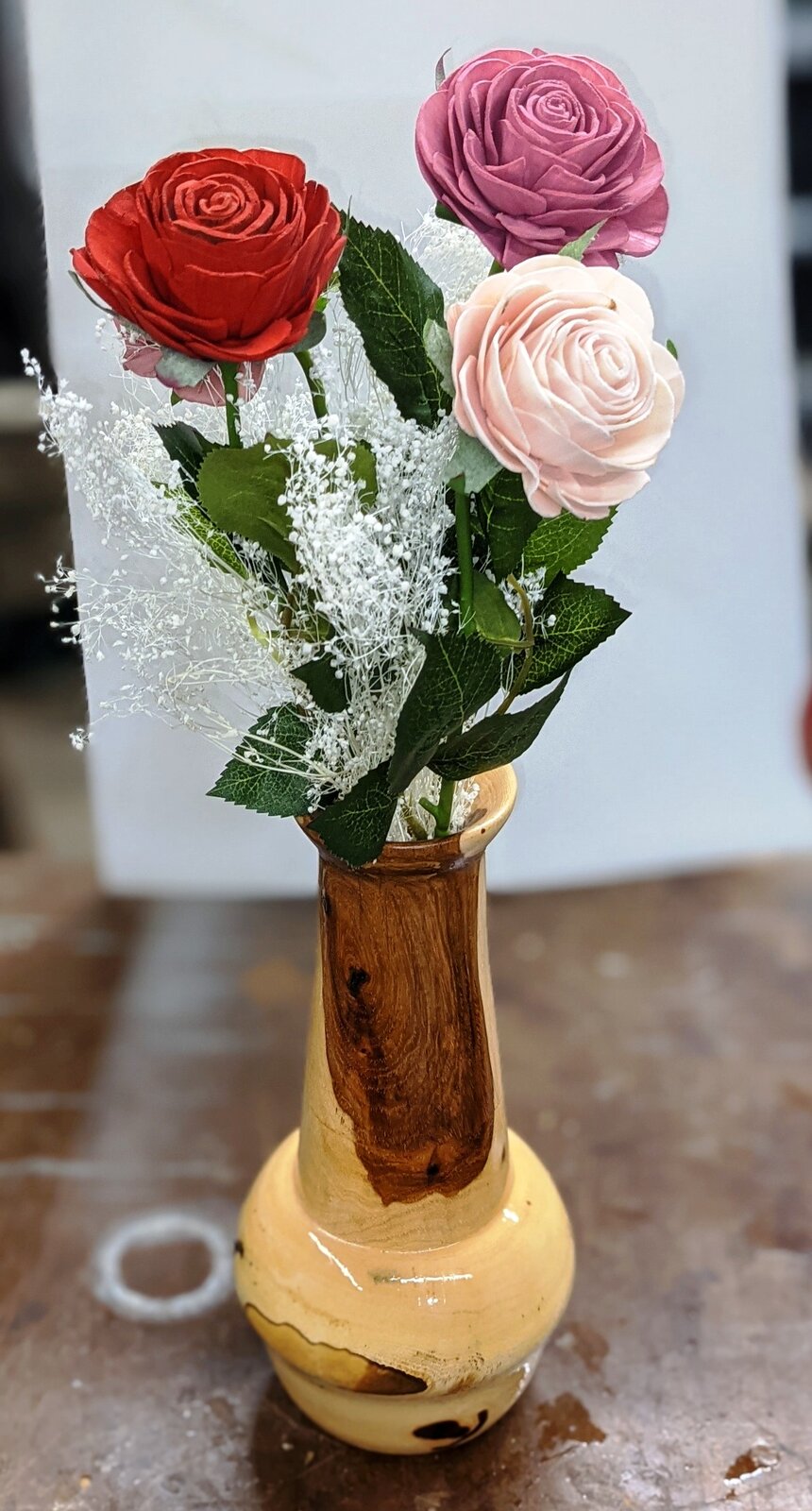 I bought my wife 4 wood roses for Valentine's Day this year and told her I would make a vase for them.