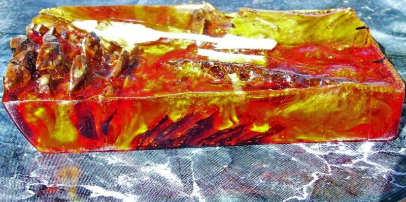 Thanks Cris, The Alumilite dyes are great. Every one that sees the orange is just amazed at the way it looks. The photos do not really show the dept in this color. This was a 6 oz pour (4 orange and 2 yellow) and I used 6 drops of dye in the orange and 5 drops in the yellow and a 1/2 of tsp of pearl powder.