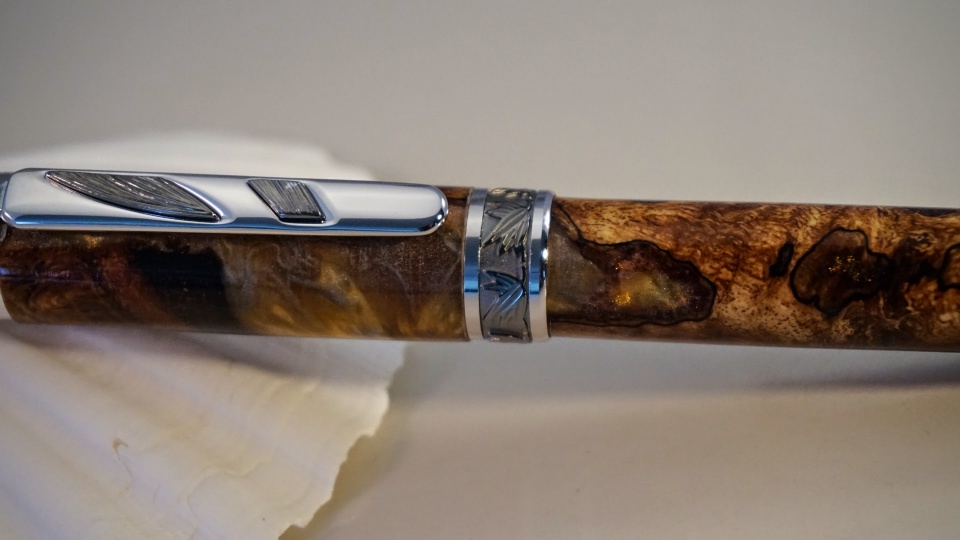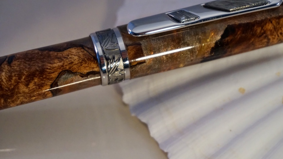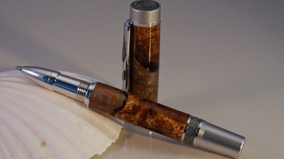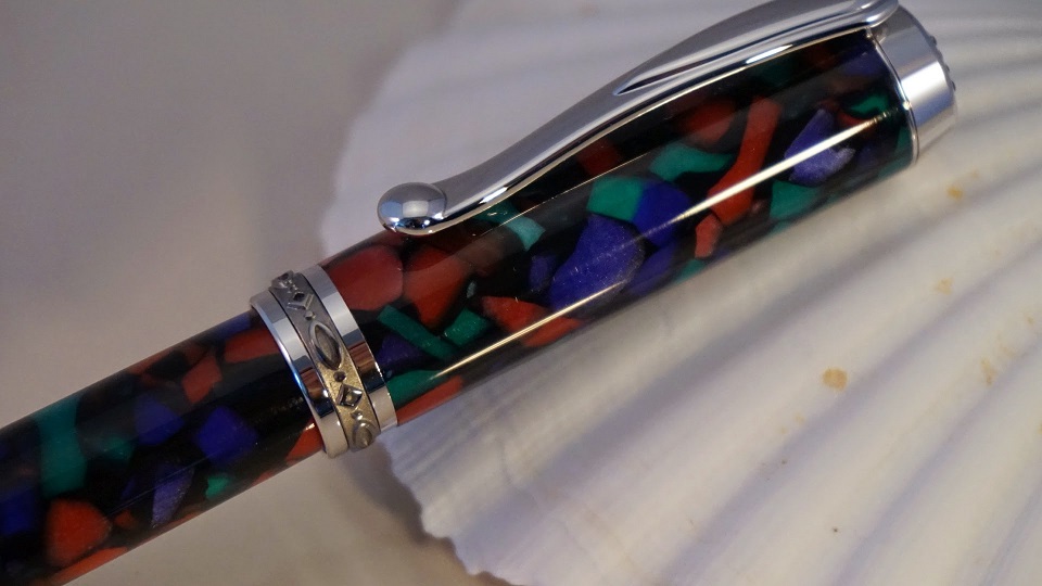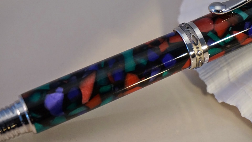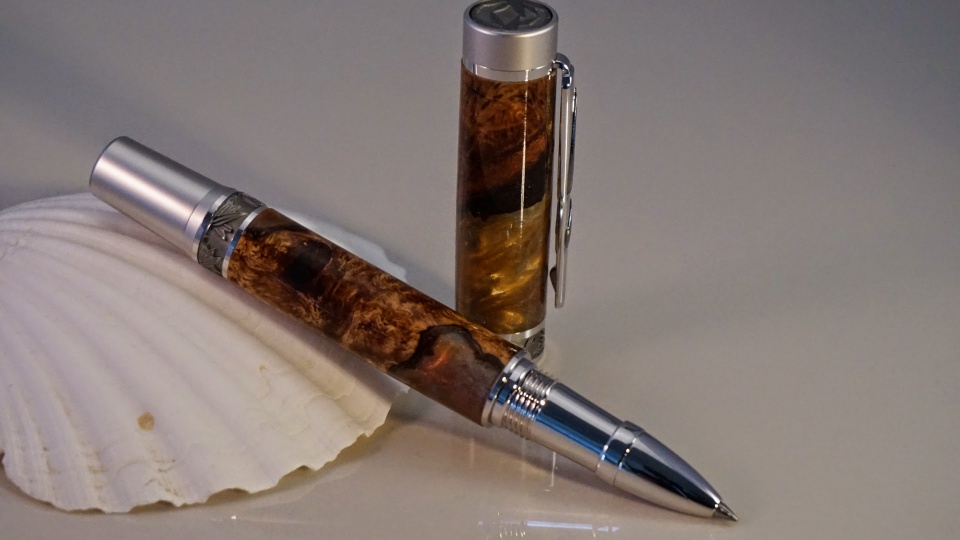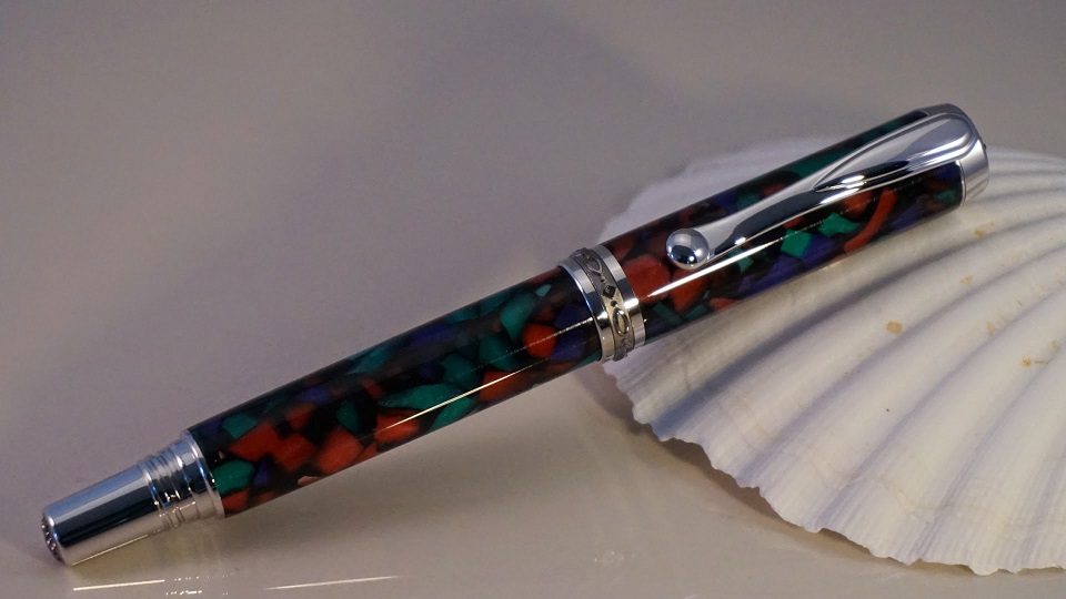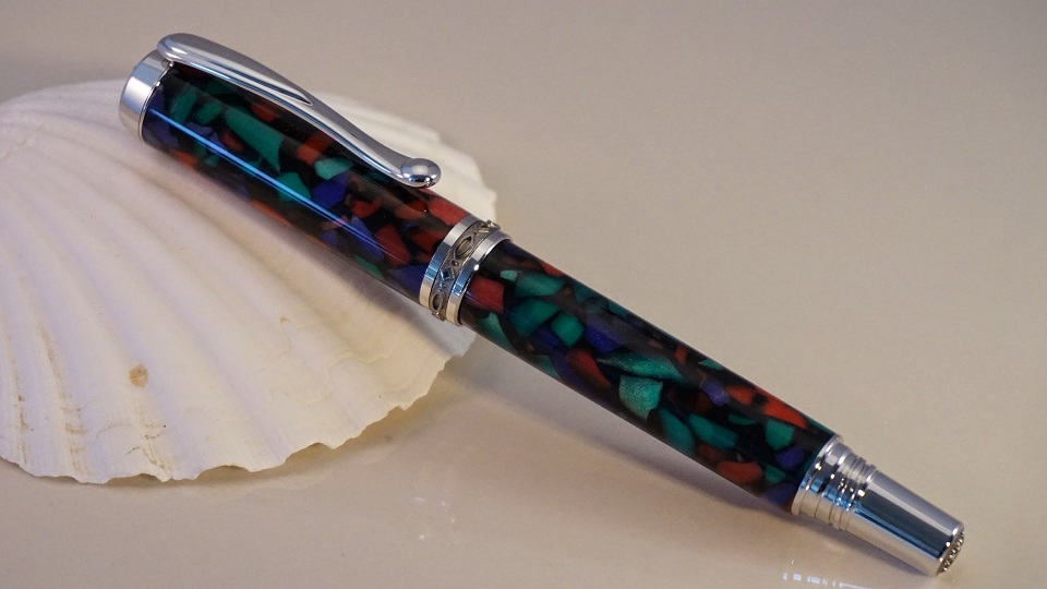 Just wanted to post a couple of pens I completed this last weekend. The first is an Imperial in Bog Oak and Silver/Amber resin, while the second is a Jr. Statesman in Stained Glass Cebloplast.