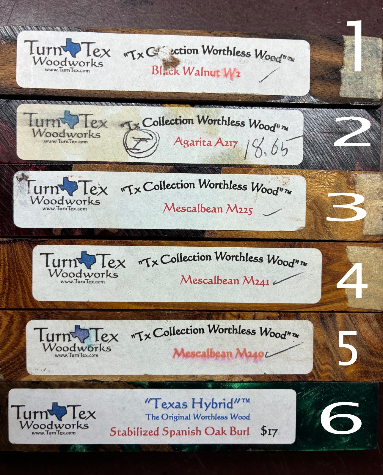 These were blanks made by Curtis Seebeck before he decided to devote more time to Cactus Juice and stabilizing chambers. The originally sold in the range of $15 - $20. There are not too many around any more, at least I don't think so. I'm asking $12 each plus shipping.