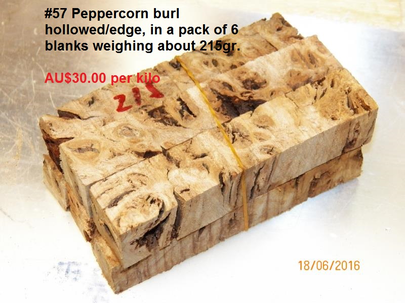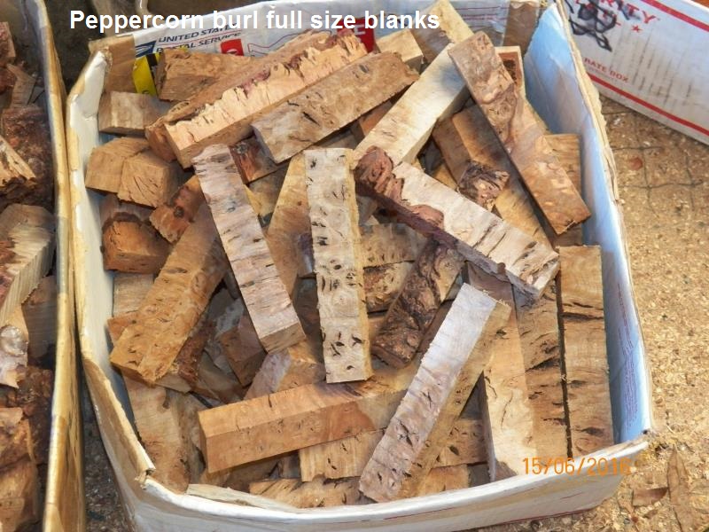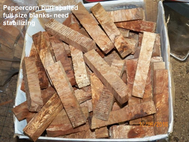 I have plenty ready but not sorted or photographed, I started this thread after spending the last 2 afternoons processing one of the large pieces of the Peppercorn burl I brought home and to be fairly honest, the large percentage of these large pieces of old burl would be pretty much useless for anything else than small pieces like pen blanks, there is I believe about 10% of it that I can salvage as medium size bowl blanks, the biggest I processed to stabilized is about 1 cubic feet but most are smaller than that.