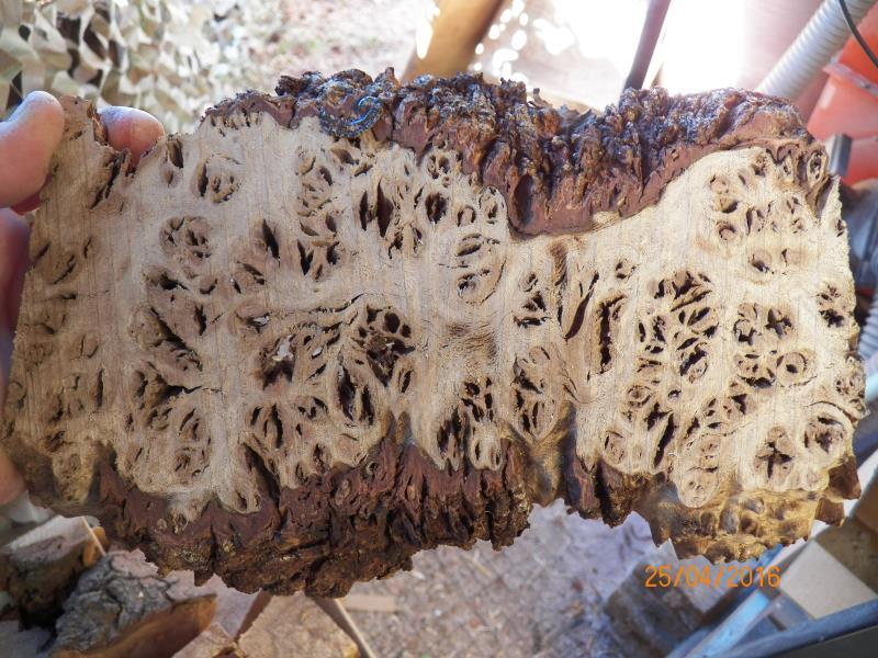 I have an issue with the Peppercorn burl I got, I don't have the space to put it all under cover and this burl has been considerably weathered from years in the weather. This is not all a negative as you may think, in fact, this burl is quite useless when green because it needs to dry to complete the nature cycle of natural decomposition which in this burl means, beautiful openings and lots of areas where the wood turn into a mass of spalted material.