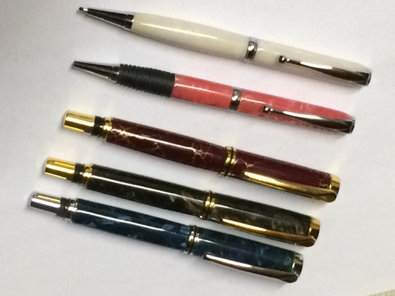 Three jr gentlemen and two comforts - Trustone came out nicely and the peacock acrylester, chipped the pink one's tip just as I was finishing the second last MM pad - had put the soft grip on to save the pen - its for a young lady going to school next year - thought the soft grip might be appropriate, the red and black gentlemen are for her mom and dad! The white comfort and blue gentleman goes to a friend who decided on the last minute to have the combo