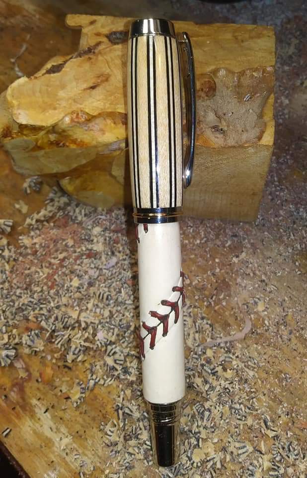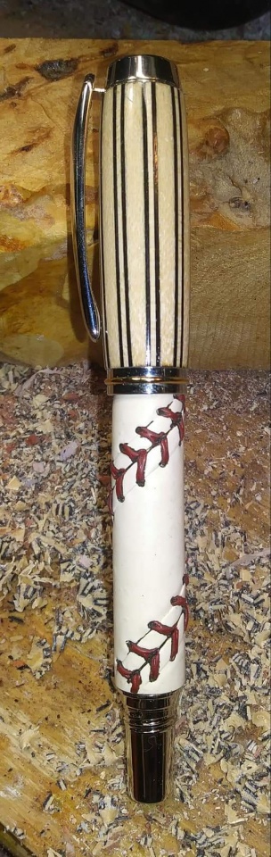 Love that pen! How'd you make the bottom? Looks like you peeled and trimmed the cover from a baseball and glued it? Very cool.
