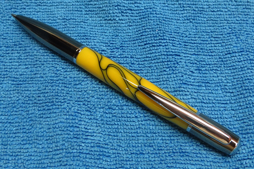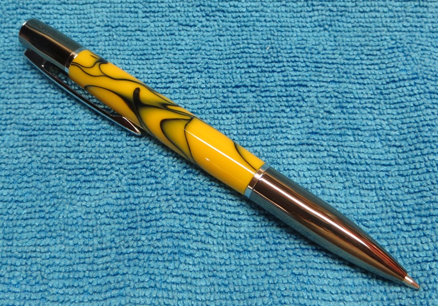 Another Yari pen, in gunmetal and chrome. The blank is called Smiley Face. Makes a fun, almost whimsical pen.