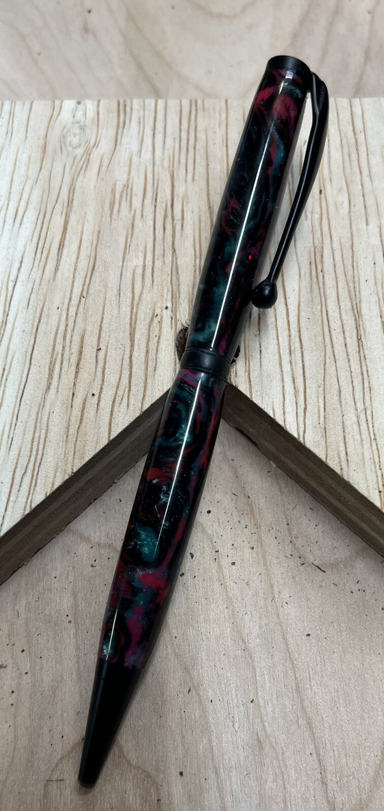 Alumilite Clear Slow with some of the Eye Candy Pigments my kids got me for Christmas. Not sure what inspired the combination but really like how it turned out.