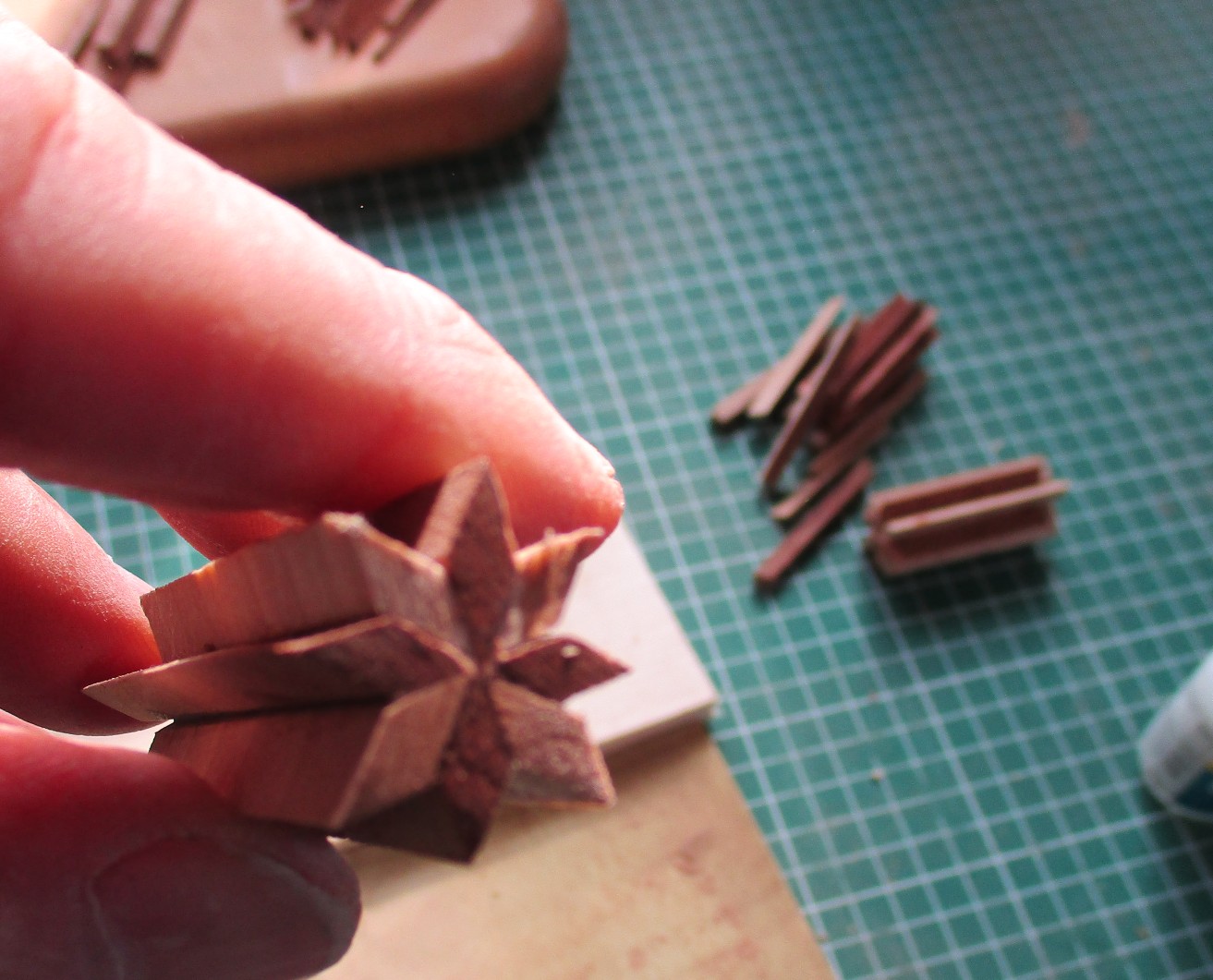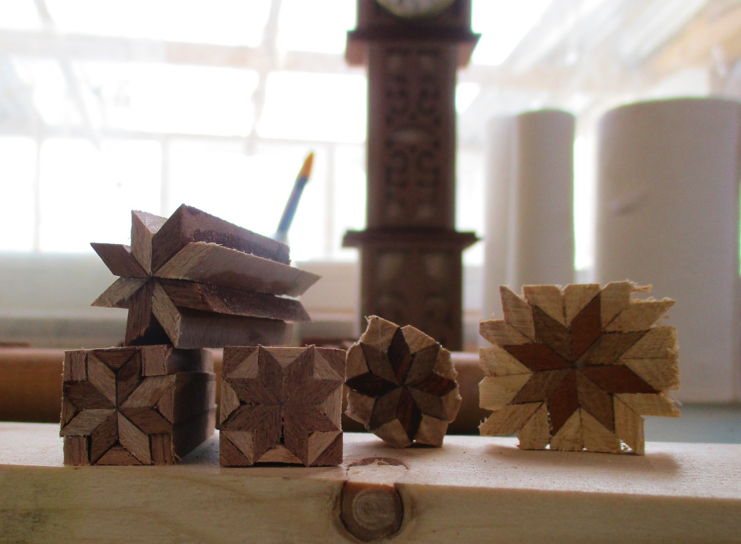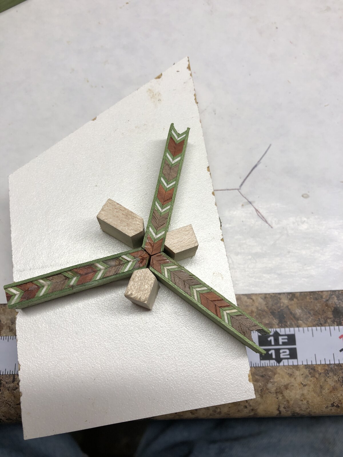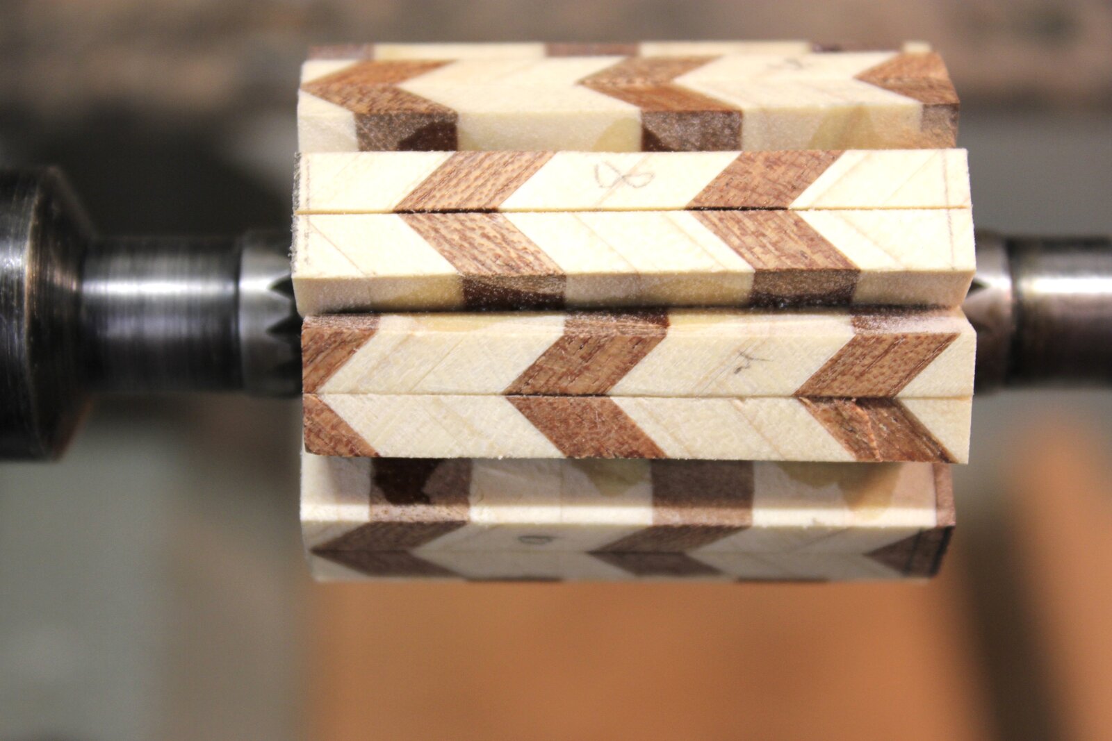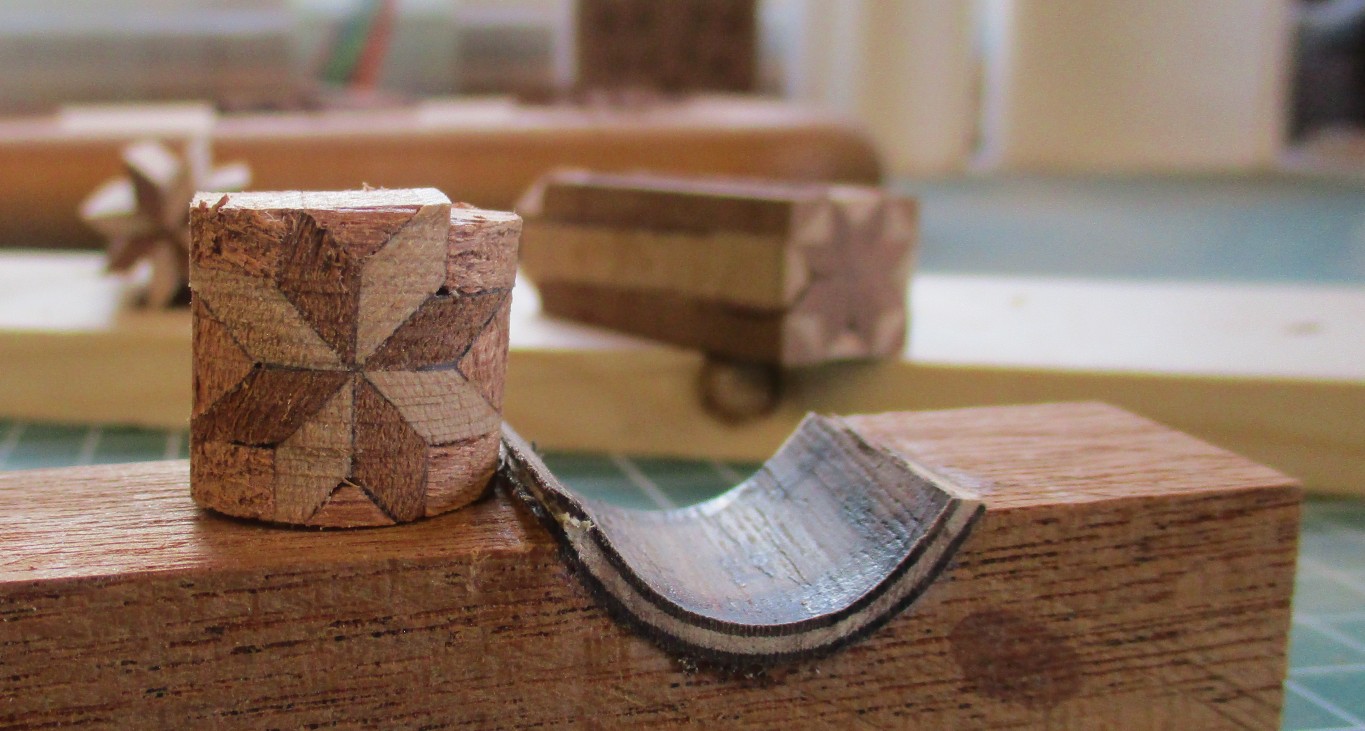 2. Alan's pattern concepts are excellent. Try the method I used for my Chevron finials. i.e., sanding the Chevron pieces down to the angle you want for the sides you want. (brush up on your geometry, google is your friend).