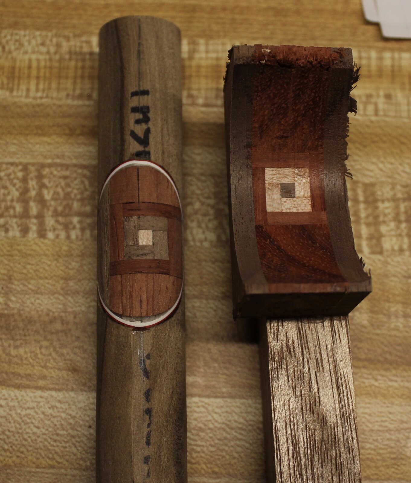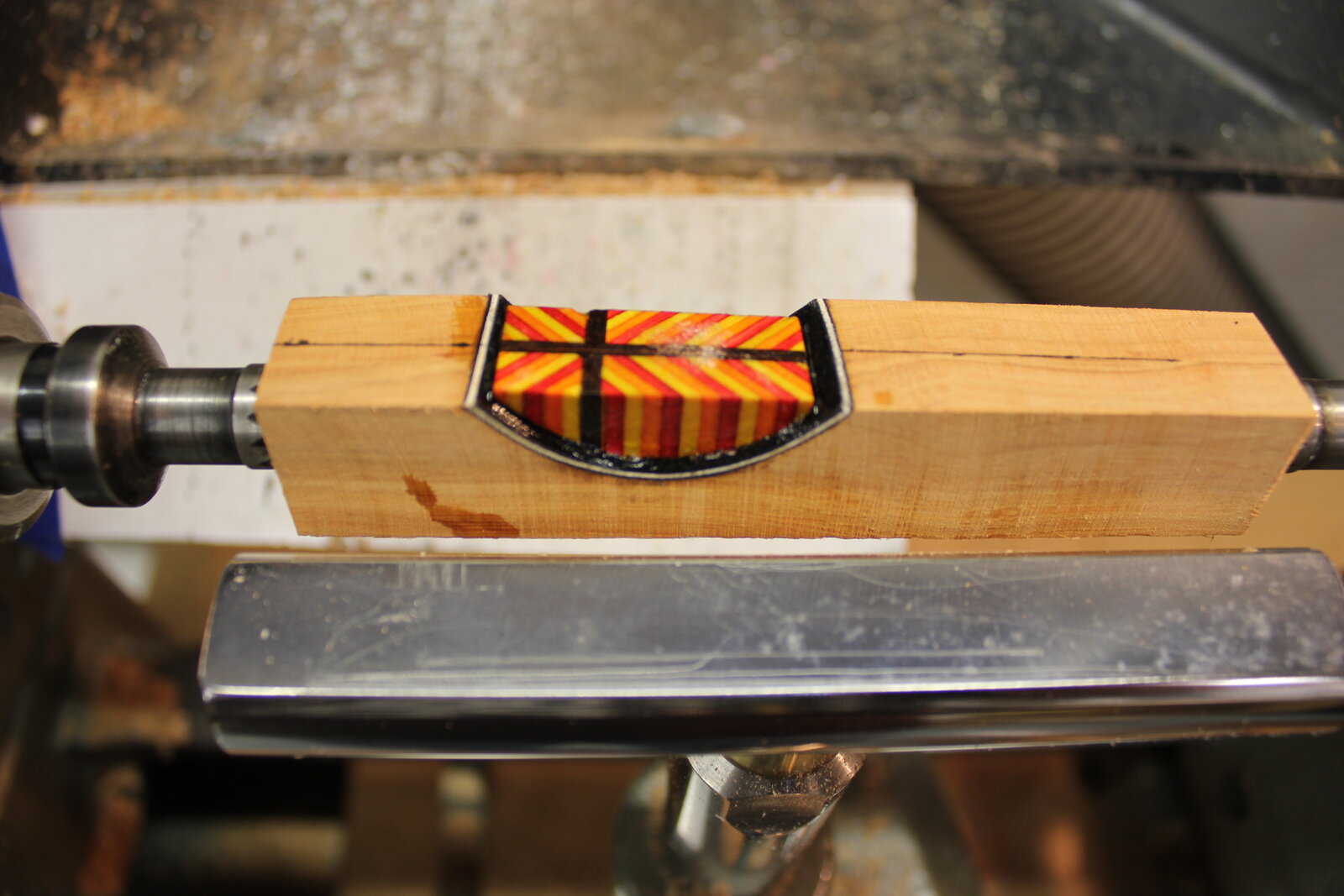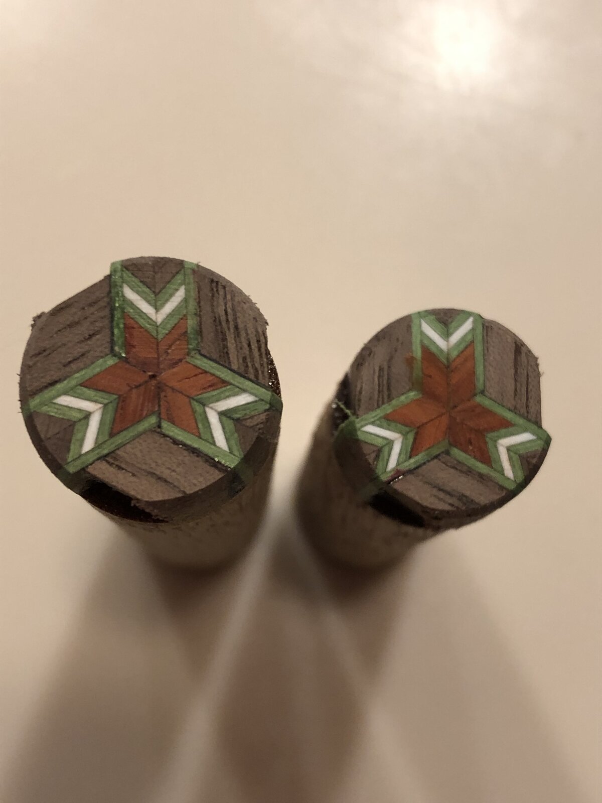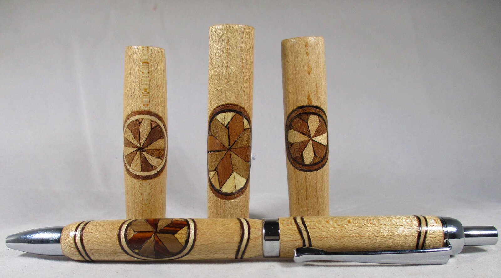 Oh, making a cool design the proper size for the window pane will not be the greatest challenge! Its getting it centered so that when turned down to final pen OD size it is where you want it to be. (Hank had an excellent phrase for this in another recent thread, a quote from Wayne Gretzky: Basically... It's not being where the puck is at, it's being where the puck will be. For us, it's not centering the pattern on the outside, its getting a techniques for centering the pattern on the inside, which we can't see until it's turned down). The final photos show one where it was not centered properly.