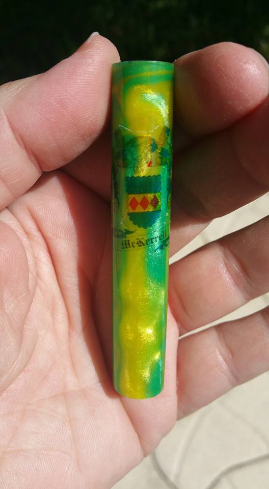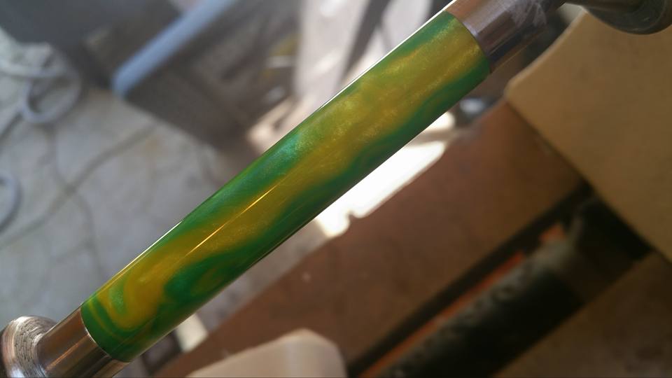 I made this blank last night for a custom order. Client wants a Celtic with a green and yellow blank and a family crest decal. So when I took it out of the PP this morning, I got a green blank