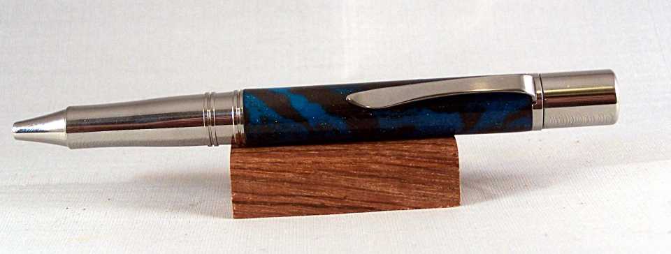 While here I offered to teach her to turn her own pen and she chose a Lazerlinez Coyote which she wrapped in a Blue Panther Rhino plastic blank.