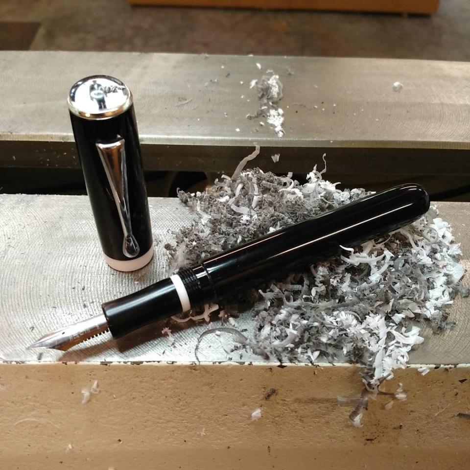 Esterbrook 9048 fine flexible nib with a conversion to use a converter rounds out the details.
