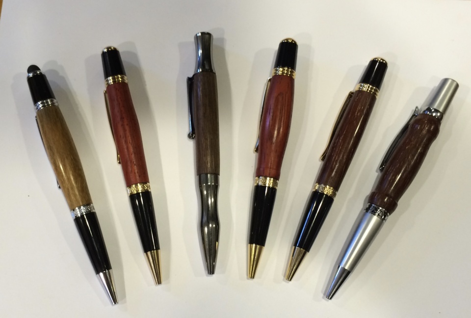 Monday, our wood turning club had a youth pen turning class. We had six students. These kids have just started to turn. The pen class was class 3 of a 4 part series. They have turned a two part gavel, an ice cream scoop handle, these pens, and will tackle a small bowl next time.
