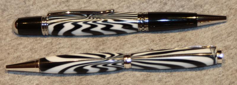 Here are a couple zebra pens I made for my wife's boss and her husband. Her husband is a Big 12 football official and I thought it only fitting. I made a slimline for him and a Mesa for her.