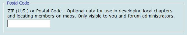 Maybe the ZIP can also be added to the avtar shown on each post to see who lives in your "neighborhood". Texas is a big state with a lot of members. I don't always recognize their city or its location. The ZIP would help locate members. San Antonio area has over 70 zip codes. (I didn't know that until I just looked it up :confused:)